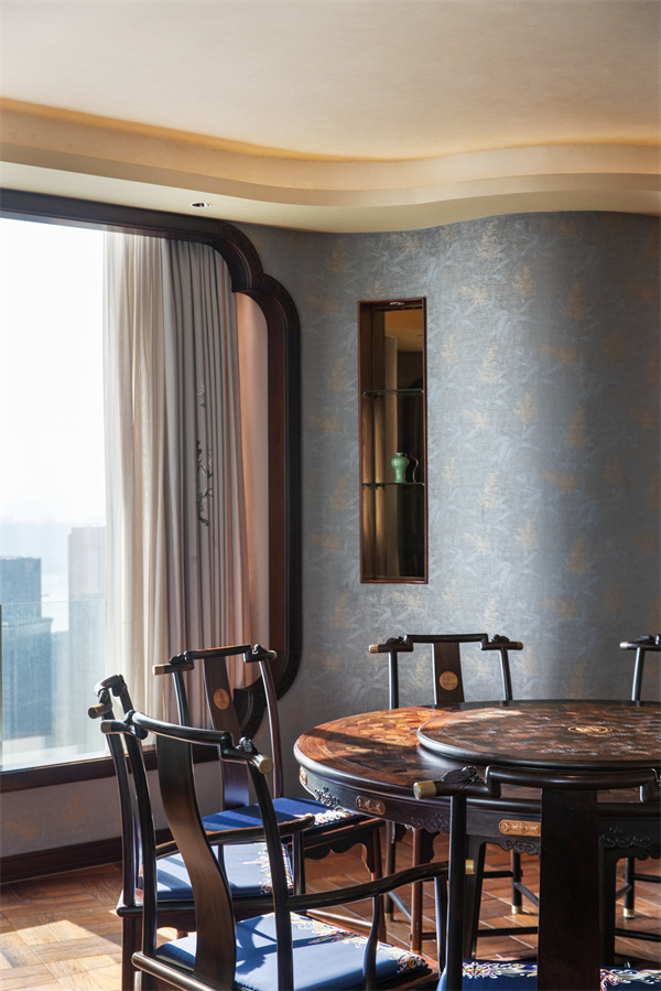 同時,利用自然光與燈光的巧妙結合,營造出溫馨而又不失莊重的氛圍。無論是客廳的開闊大氣,還是臥室的靜謐雅致,都讓人仿佛置身于一幅流動的山水畫中,心靈得到了前所未有的放松與凈化。