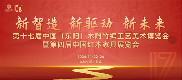 11月22日-24日,第十七屆中國(東陽)木雕竹編工藝美術博覽會暨第四屆中國紅木家具展覽會在東陽中國木雕城木藝文化館正式舉行。本屆東博會以“新智造·新驅動·新未來”為主題,專注行業高質量創新發展。